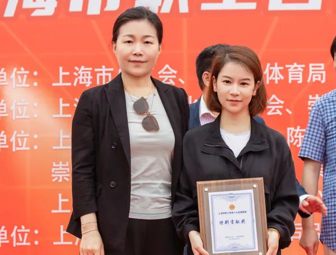 上海市總工會宣傳教育部副部長鄒曉鷹為崇明區總工會授予上海市職工體育十大品牌“賽事特別貢獻獎”