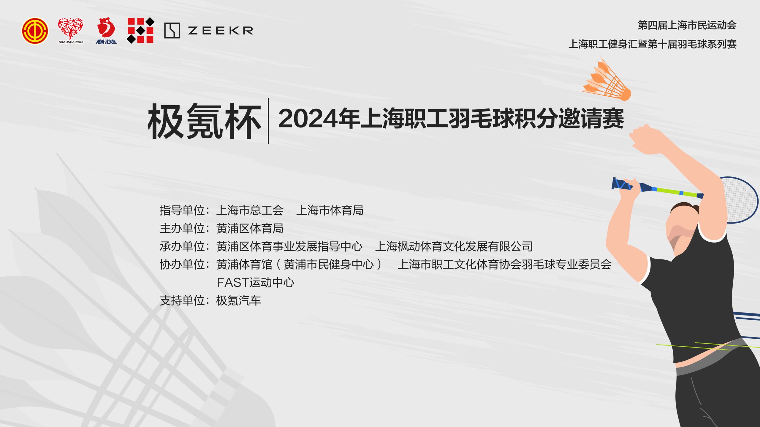 職工羽毛球比賽|“極氪杯”2024年上海職工羽毛球積分邀請賽開始報名啦!