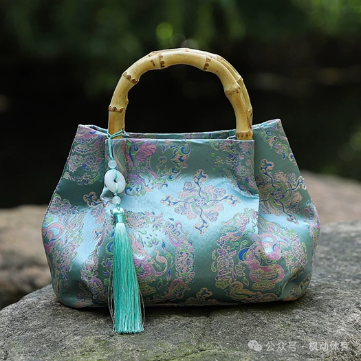 國風宋錦手拎包是將傳統宋錦面料與現代設計結合的時尚單品,既保留了絲綢的華貴質感,又融入了實用功能。